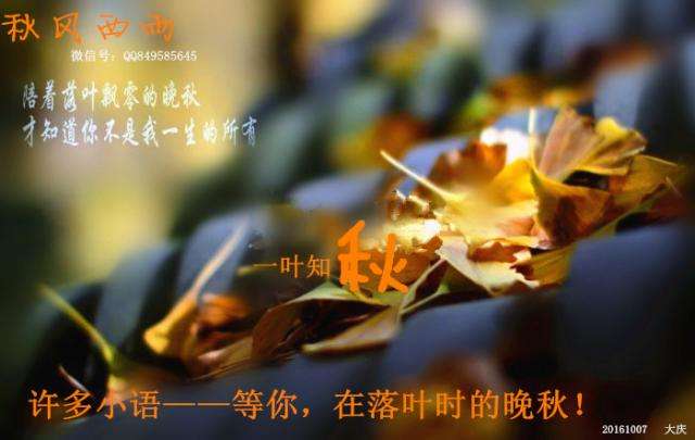 如水的凉夜,在指尖下悄然流逝,在不经意的时光里,十一小长假即将结束,在最后一天的尾声里,许给自己一个慈悲的温柔,在家懒懒的休息一天,等你?在落叶时的晚秋!雪小禅说:“在薄情的世界里,我们要深情的活着”!常常怀有一颗感恩的心,走在一条风雨兼程的路上,相信缘分,相信美好,一直相信陪伴在自己左右的人,脚下步步莲花,心底必怀菩提,但走着走着缘就尽了,人就散了,感谢那些说不出口的痛和失落,更要感谢擦肩时的喜悦和快乐,于是在时光深处,轻轻念起:我还在呢!许多小语——等你,在落叶时的晚秋!